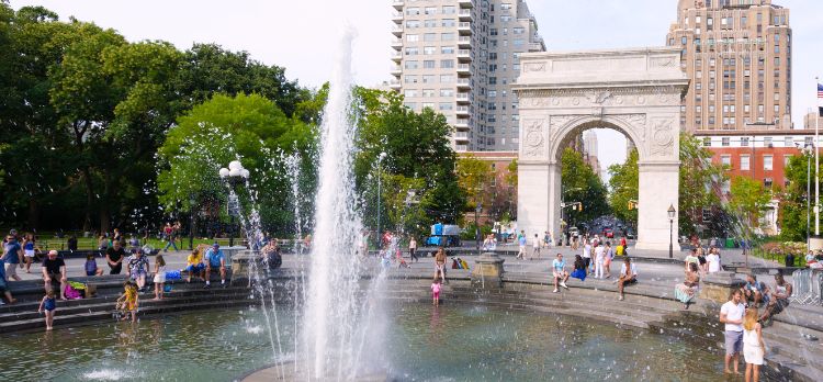 El Washington Square Park con su famoso arco, es el corazón simbólico de Greenwich Village.